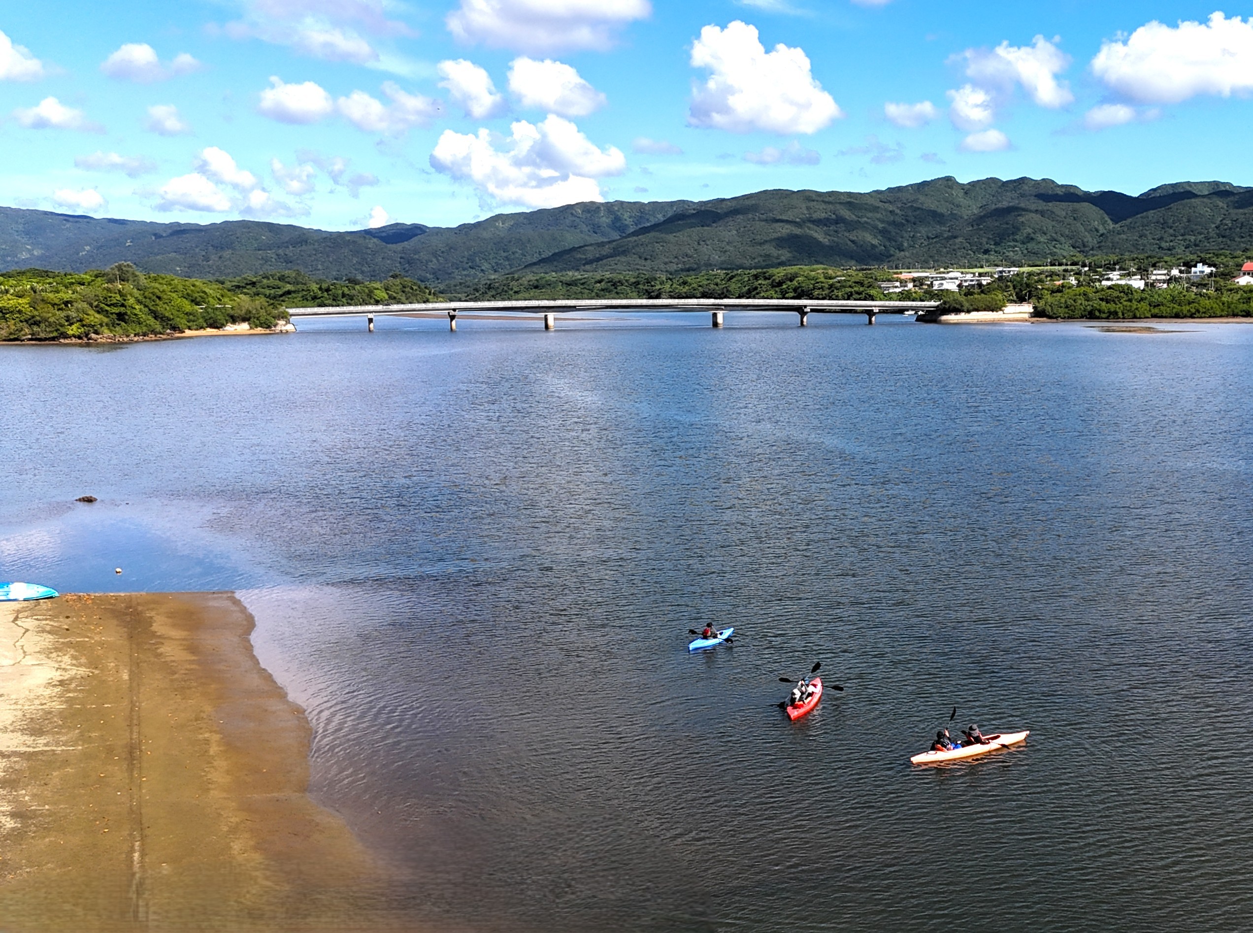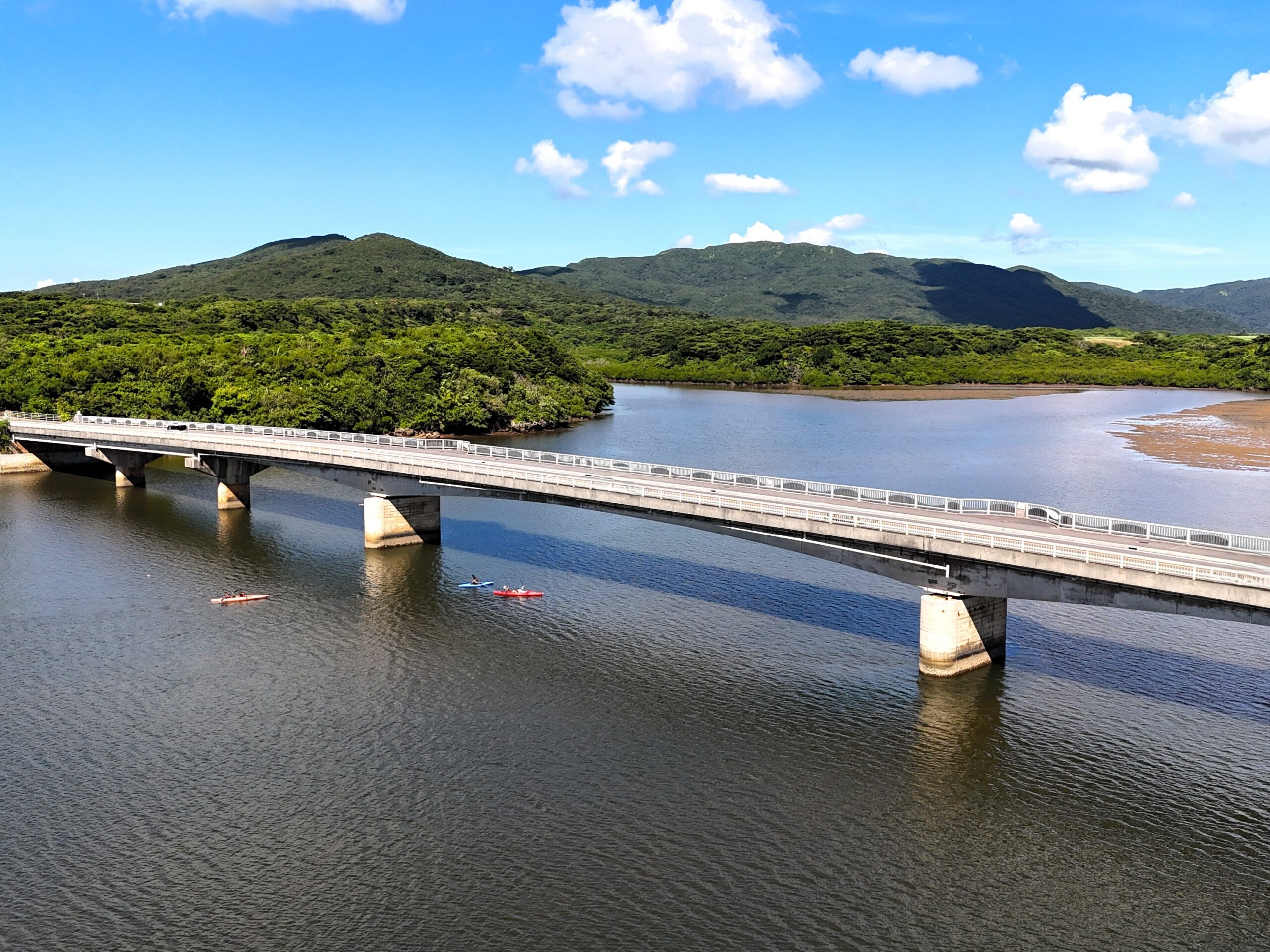 目の前には雄大な景色が広がります☆大きな仲間橋の下をカヌーで通るのも迫力満点です♪