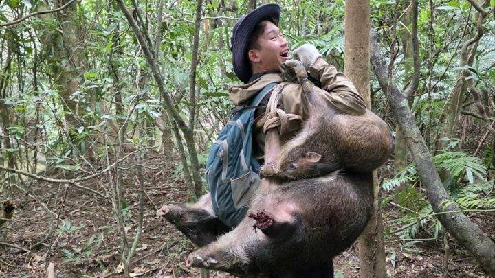 こんにちは~!!空風のどっぽでーーす。 休日にイノシシ猟に行ってきましたー!! イノシシちゃんがいる山までは船で行きました! 船を降りたら、いざイノシシ猟スタート!! 普段のツアーとは違って、「これ道かっ!?」っていうと…